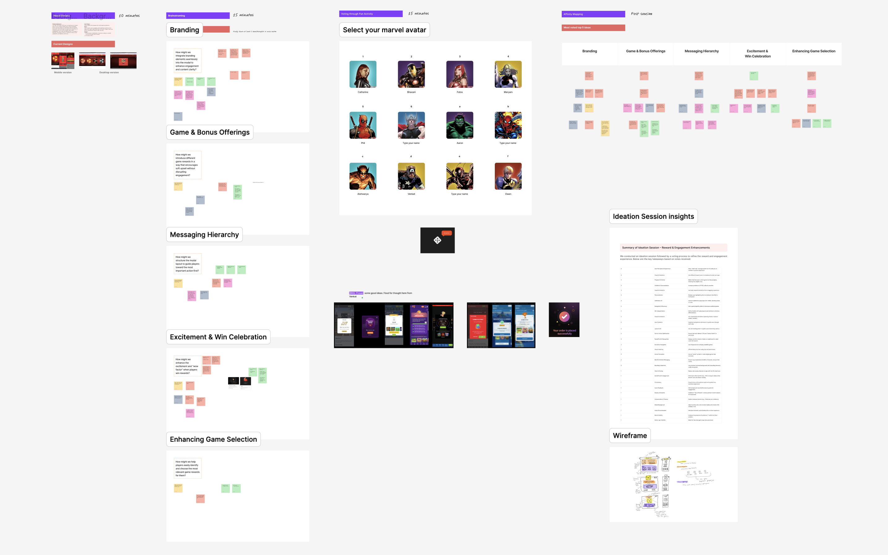 During this phase, I held an ideation session with the team in Figjam to brainstorm additional ideas. We collected valuable insights, which I later organized using card sorting and voting. Subsequently, I developed those ideas into wireframes for stakeholder review before proceeding to visual design.